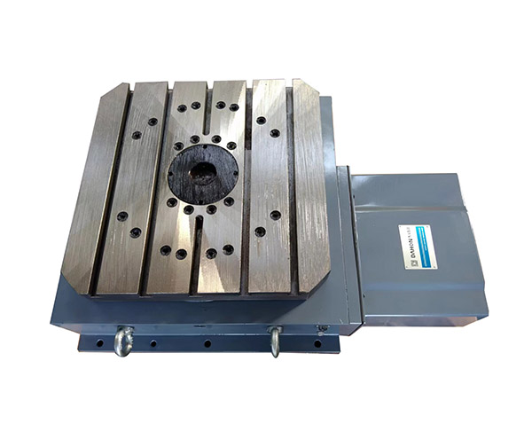 ZT 12系列數(shù)控回轉(zhuǎn)工作臺(tái)是各類數(shù)控鏜銑床加工中心的關(guān)鍵配套附件,可以工作臺(tái)水平方式安裝于主機(jī)工作臺(tái)上,用于主機(jī)的第四回轉(zhuǎn)軸,或直接作為機(jī)床的工作臺(tái)使用。轉(zhuǎn)臺(tái)在主機(jī)相關(guān)控制系統(tǒng)控制下,可實(shí)現(xiàn)等分和不等分的孔、槽或者連續(xù)特殊曲面加工,且保證很高的加工精度。