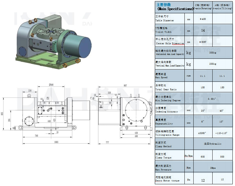 rotary table is constructed complete with an NC controllable rotary axis as well as an NC controllabletilting axis,and mainly used with CNC milling machine and machine center,It is controlled either by two-coordinatecontrol system of the main machine or by selfequipped two-coordinate control system.In combination with mainmachine,holes,slots,cam,curving line and surface in any angle position can be carried out precisely.Besides,it can alsobe used in common drilling,milling and boring machines,performing independently equal and unequal divisions.